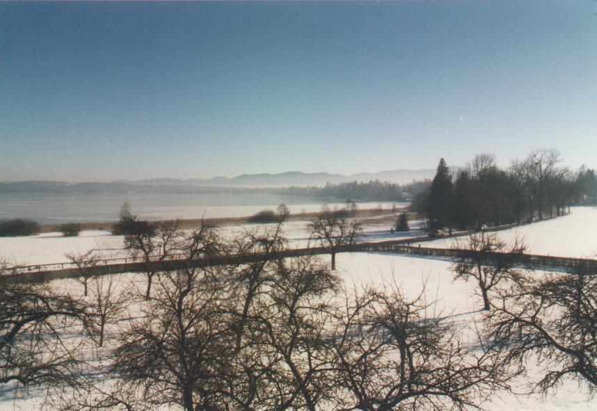 Unser großer Garten mit Blick auf den Starnberger See ist für Eltern und